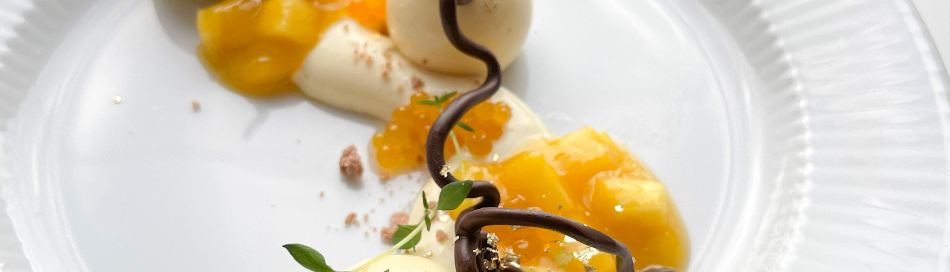 Kog 200 g mango, rørsukker, passionsfrugt pure og citronsaft i en gryde ind til mangoen er mør – Tá gryden af varmen og stavblend massen en smule, smag til og tilføj gerne mere citron eller sukker. Skær de 150 g mango i tern og hæld i mangokompotten.