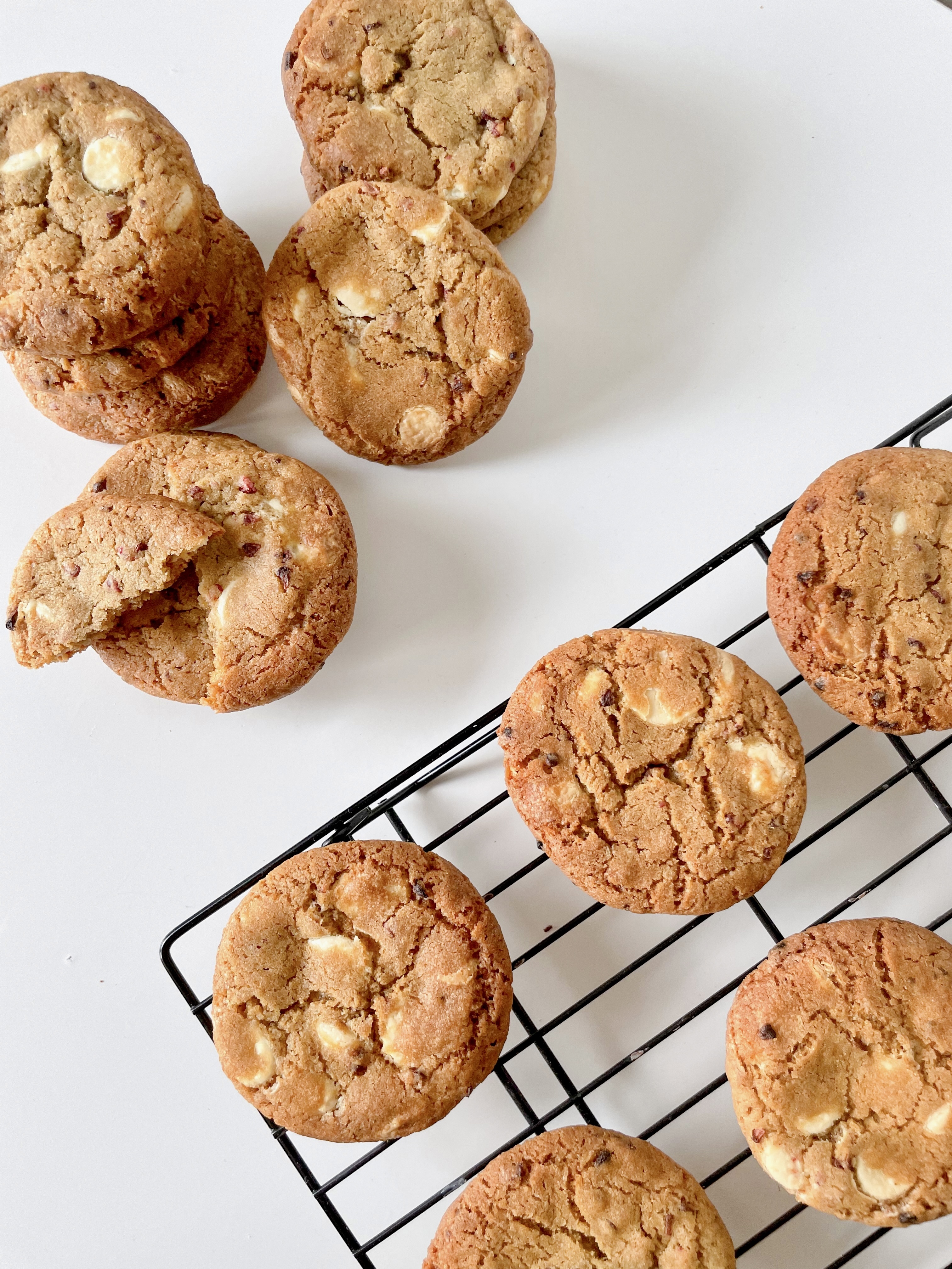 Hvem elsker ikke cookies? Disse indeholder hvid chokolade og hindbær, hvilket er to ting som supplerer hinanden rigtig godt – og du kan give dem endnu et twist og put lidt lakrids i dem.